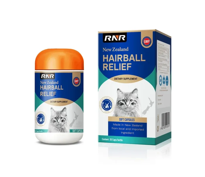 Our Hairball Relief Capsules are a premium, softly formulated solution designed to gently reduce hairballs in both cats and dogs. Crafted with natural, high-quality ingredients including Plantago ovata shell powder and nutrient-rich salmon oil, this advanced formula delivers a triple synergistic effect. It works by physically encapsulating loose hair, providing smooth intestinal lubrication, and offering soothing digestive protection, helping your pet pass hairballs comfortably and naturally through their regular bowel movements.
